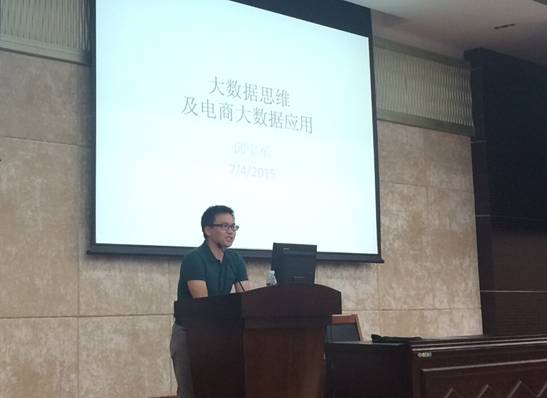第三讲报告由邱宝军先生主讲,报告题目是数据思维和大数据在电商中的应用。邱先生开门见山地指出了数据思维在大数据时代的重要性,数据思维可以分为三个方面:定量思维、相关思维和实验思维,三种思维相辅相成,缺一不可。通过美国总统竞选民调、淘宝网店流量分析等例子,邱先生深入浅出的介绍了数据思维在实际生活中的应用。最让人印象深刻的例子莫过于邱先生曾任职的eBay公司,利用数据科学的知识,找出了网页上最最合适的商品图片页面展示大小,一个小小的调整大大促进了公司的年销售额,把数据科学直接转化为了现实的生产力;同时,邱先生也结合自己从事电商大数据研究的经历,给大家介绍了电商数据分析的一些例子。邱先生强调数据科学家需要深厚的统计学功底,鼓励大家学好统计学,将来从事数据科学工作。